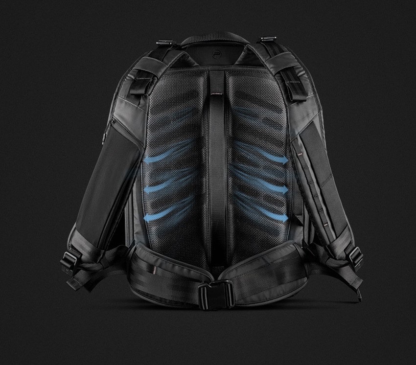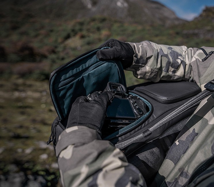 Эргономичная спинка и лямки, а также съемный поясной ремень и нагрудная стяжка обеспечивают комфорт при ношении в течение всего дня. На правой лямке имеется карман для смартфона, а на левой – ячейки для крепления камеры (на пряжку типа Peak Design Capture или PGYTECH Beetle Camera Clip). Также предусмотрено несколько ручек: верхняя, боковая и вдоль всей спинки: с их помощью легко укладывать рюкзак в багаж, на верхние полки, а также можно закрепить его на ручке дорожного чемодана.