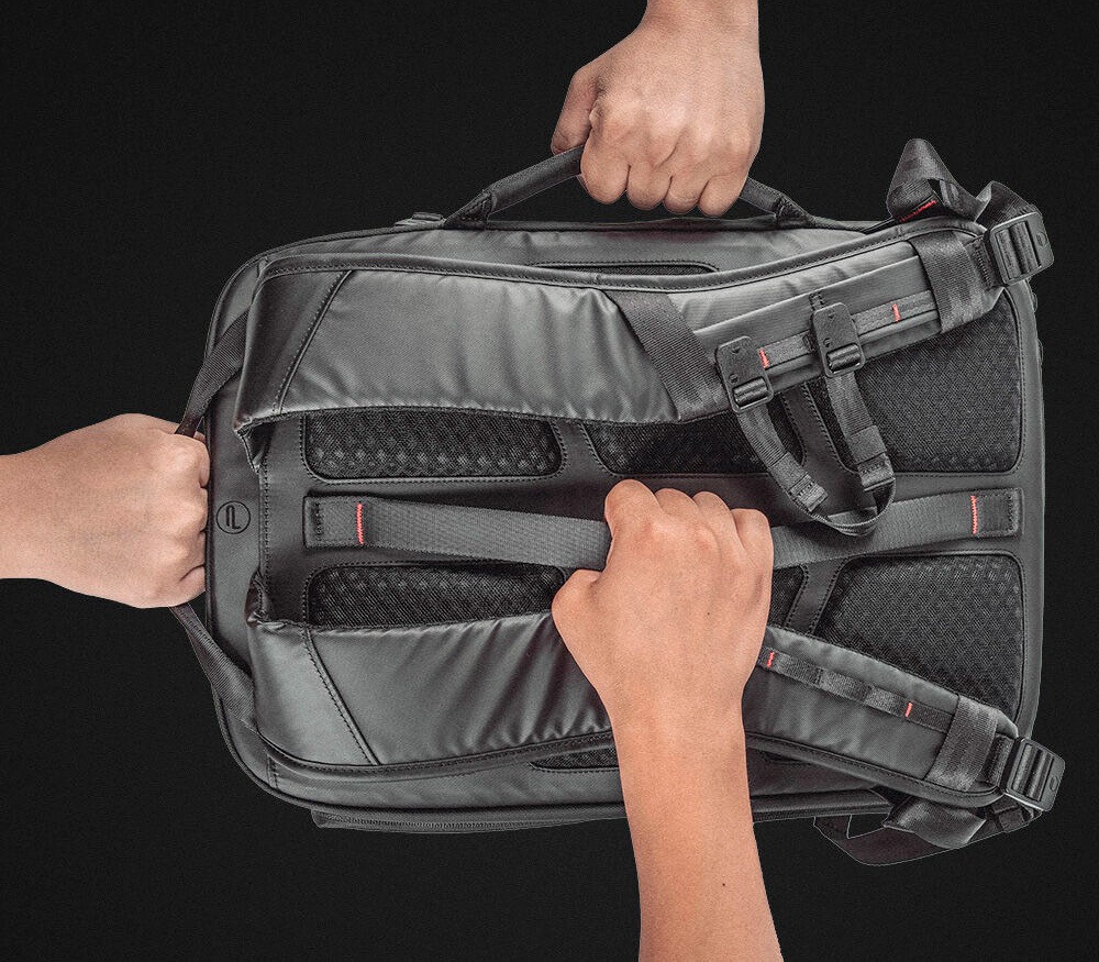 В комплект входят 2 ремня для крепления таких аксессуаров как, например, штатив или туристический коврик (несколько точек крепления позволяют закрепить их сбоку, сверху или снизу). Эргономичная спинка и лямки, а также регулируемая по высоте нагрудная стяжка обеспечивают комфорт при ношении в течение всего дня. На лямках предусмотрены небольшие карманы для таких мелочей как сменные аккумуляторы или крышки объектива. На лямки также можно закрепить пряжку для ношения камеры: такие как Peak Design Capture или PGYTECH Beetle. Также предусмотрено несколько ручек: верхняя, боковая и вдоль всей спинки: с их помощью можно переносить рюкзак вертикально или горизонтально, укладывать в багаж, на верхние полки, а также крепить на ручке дорожного чемодана.