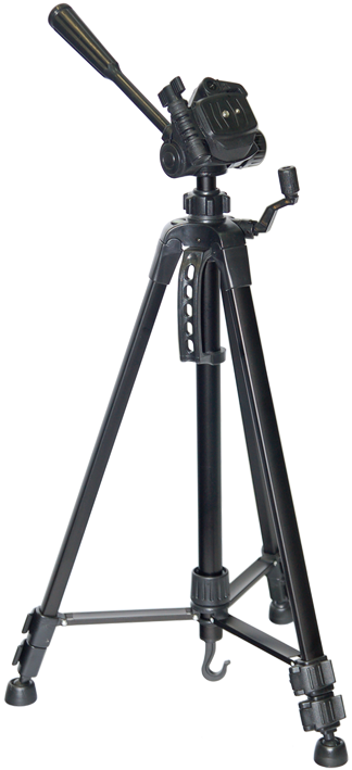 Легкий любительский алюминиевый трехсекционный штатив с пластиковыми узлами и фиксаторами ножек. Редукторное управление центральной колонной. Средняя растяжка для повышения устойчивости опоры. Голова с крупной ручкой фиксатора продольного наклона позволяет вести и фото, и видеосъемку. Подерживается ландшафтное и портретное положение камеры, панорамирование 360°.