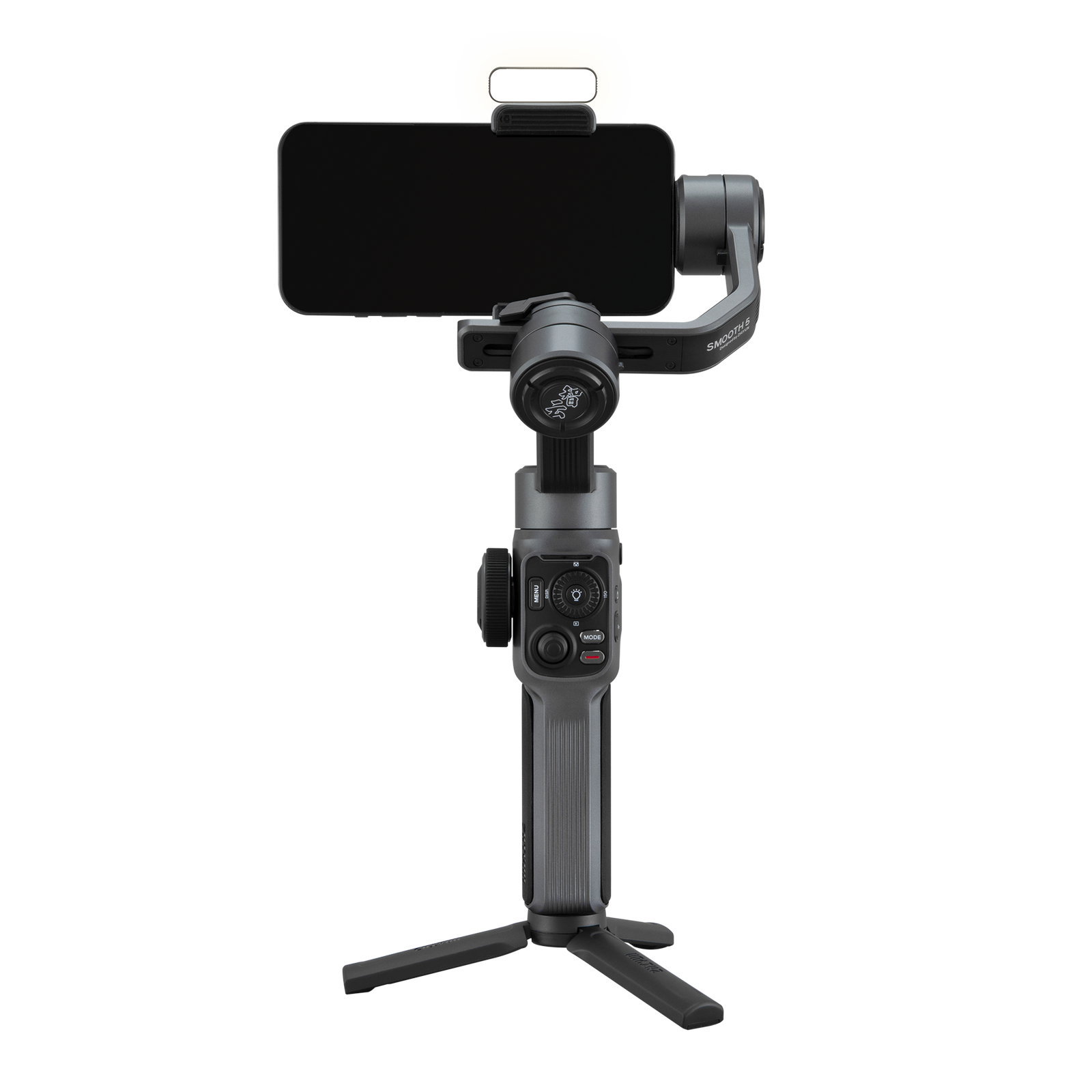 Компания Zhiyun представляет профессиональный стабилизатор для смартфонов, продолжающий успех серии SMOOTH, которая получила признание у видеографов по всему миру. Zhiyun Smooth 5 отличается высокой грузоподъемностью и способен работать с тяжелыми смартфонами, на которые установлены различные аксессуары (например, конверсионные насадки или небольшие микрофоны), а также обладает возможностью подключения светодиодных источников света на магнитном креплении.
