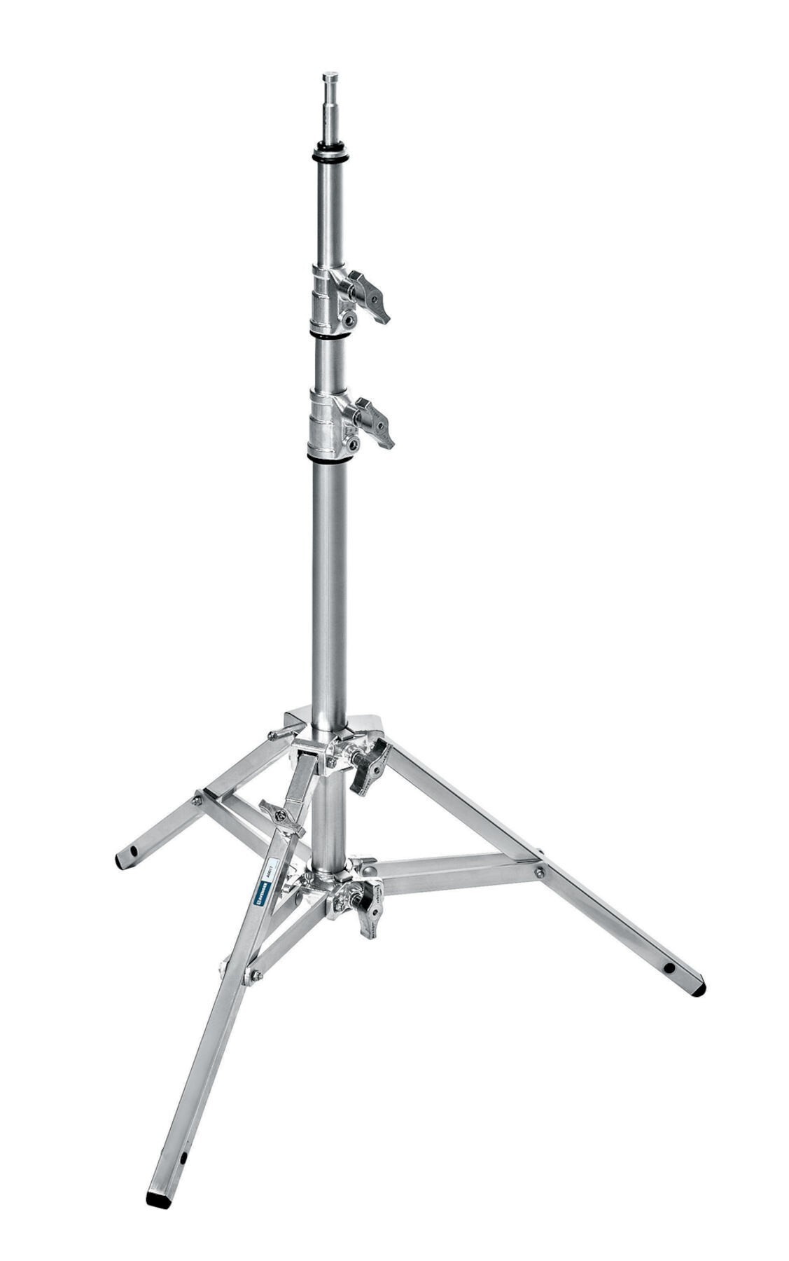 Стойка имеет стальные ножки и алюминиевые зажимы и доступна только в серебряном цвете. Имеет 3 секции и 2 зажима, может выдерживать максимальную нагрузку 4 кг и достигает максимальной высоты 1,75 м. Имеет одну выравнивающую ногу, поэтому вы можете использовать ее на неровных поверхностях. Также имеет верхнее крепление 5/8'' (16 мм).