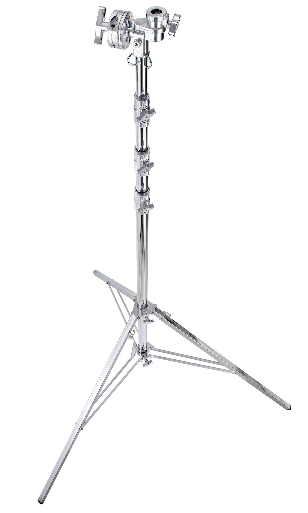 Эти стойки спроектированы с встроенным зажимом grip head для крепления опор, труб и подвесных рам. Стойка из хромированной стали состоит из 4-х секций и 3-х фиксаторов. Стойка совместима с колесами с тормозами A9000N. Максимальная нагрузка - 40 кг, рабочая высота - 5.57 м.