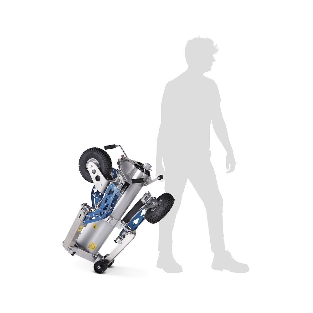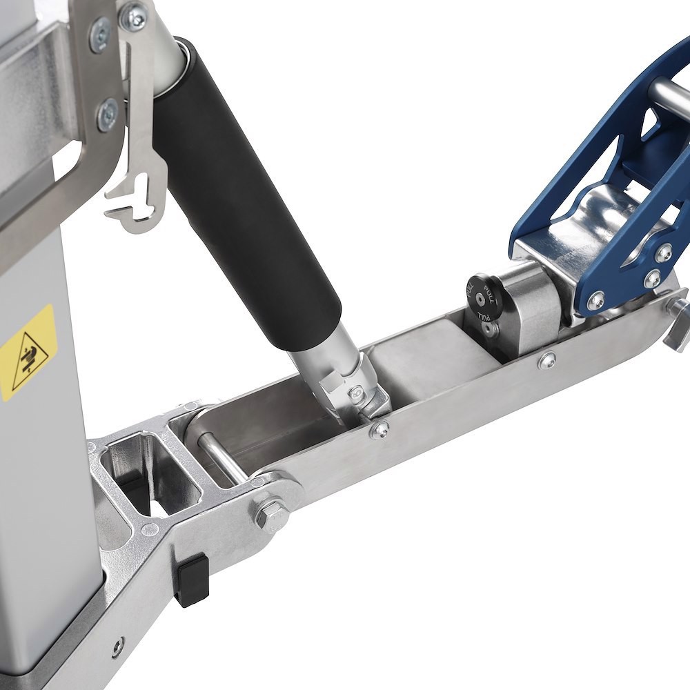 Низкая высота загрузки достигается за счет двух уникальных ключевых особенностей: во-первых, обратного складного основания и, во-вторых, многосекционной колонны без муфт. В сочетании они позволяют загружать стойку на высоте всего 94 см. Это делает ее самой низкой в мире подъемной стойкой с максимальной высотой 3 м.