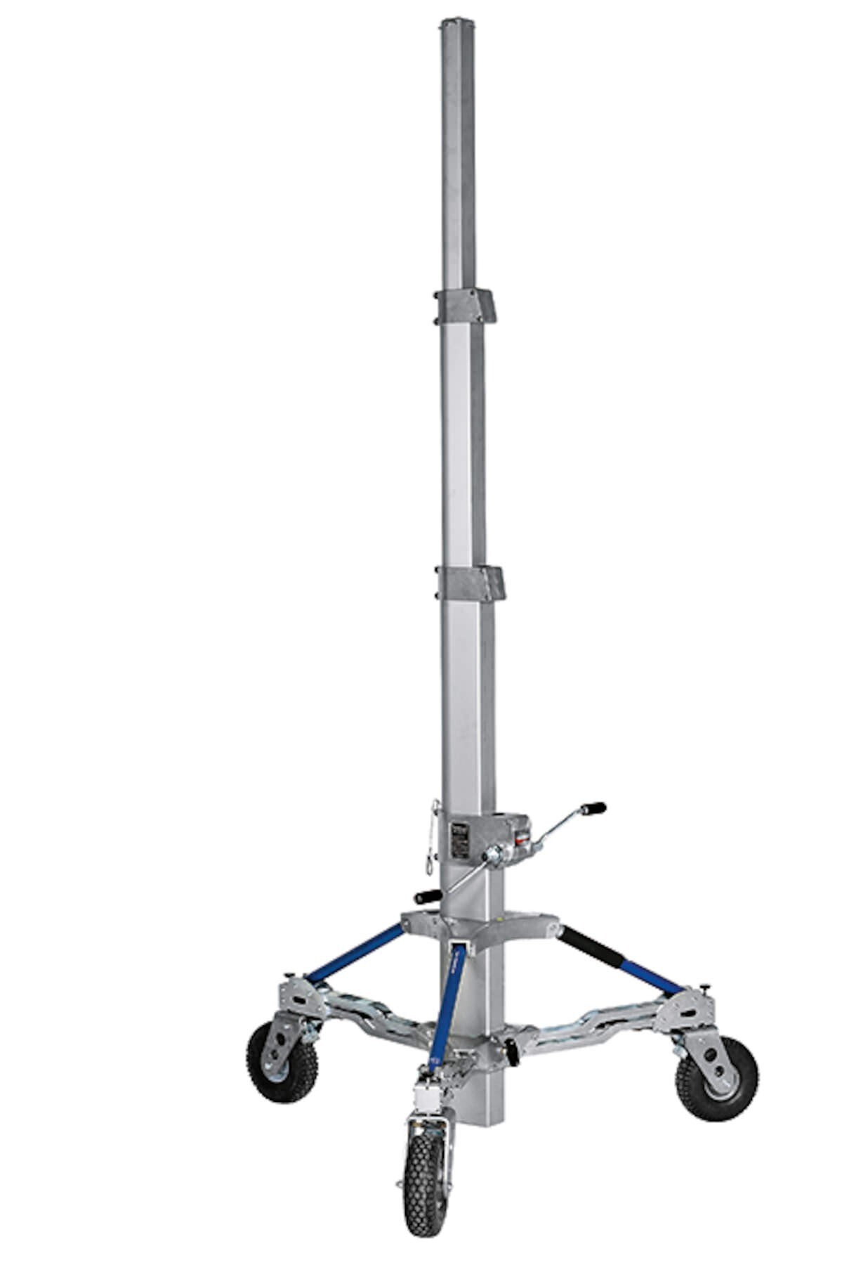 Avenger Long John Silver Junior – самая низкая стойка в мире с самой высокой грузоподъемностью. Подъемная система с винтовым приводом позволяет увеличить высоту до 3,38 м и выдерживает до 120 кг. Чрезвычайно компактная и прочная стойка позволяет легко устанавливать и снимать самые большие светильники на рынке благодаря низкой высоте загрузки в 1260 мм. Она снабжена колесами с тормозами, заполненными пеной для плавного перемещения даже на неровных поверхностях. Стойка изготовлена из стали и состоит из 4 секций с 3 фиксаторами и снабжена механизмом подъема.