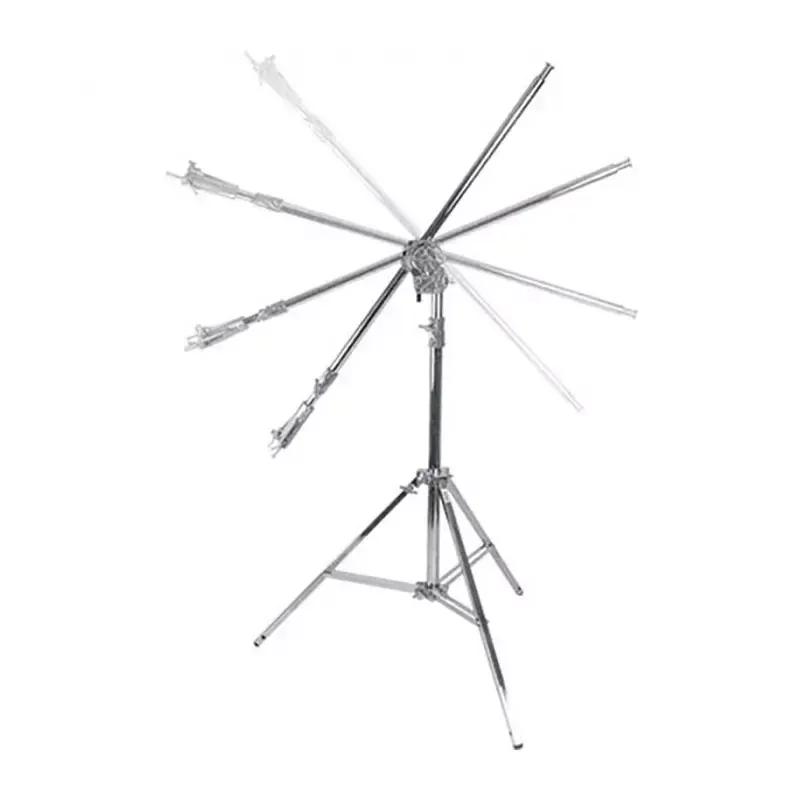 Стойка-журавль KUPO 546M K-STAND JUNIOR BOOM STAND - универсальная опора, способная преобразовываться из обычной студийной стойки в журавль. Просто выдвиньте центральную колонну из стойки и воспользуйтесь поворотным хомутом для установки штанги в нужное положение. В режиме "журавль" штанга способна выдерживать вес до 29,9 кг при минимальном вылете 1,5 м и до 8 кг при максимальном вылете 2,68 м. Такая грузоподъемность отлично подходит для осветительных приборов среднего размера с софтбоксом или зонтом. Стойка выполнена из хромированной стали и оборудована ножками с квадратным сечением. Цельнолитые алюминиевые рукоятки в сочетании с нержавеющими винтами обеспечивают надежную и долговечную работу. Литое основание оснащено вставкой Helicoil из нержавеющей стали, обеспечивающей прочное резьбовое соединение. Верхняя часть основания оснащена крючком для удобного хранения на стеллаже. Кроме того, на верхней части стойки находится проушина для установки комплекта ветрозащиты (приобретается отдельно). В конструкции предусмотрена выдвижная ножка для выравнивания стойки на неровных поверхностях и двойные распорки для дополнительной прочности и устойчивости.