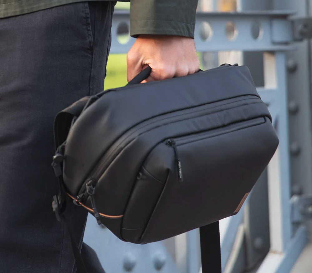Сумку OneGo Solo V2 можно носить на груди, на спине или на бедре – ремень со специальной скользящей пряжкой позволяет быстро отрегулировать ее положение (длина ремня от 50 до 150 см). С тыльной стороны предусмотрена ручка, за которую сумку можно носить в руке. Два дополнительных ремешка позволяют закрепить снизу небольшой штатив, зонтик или свернутую куртку.