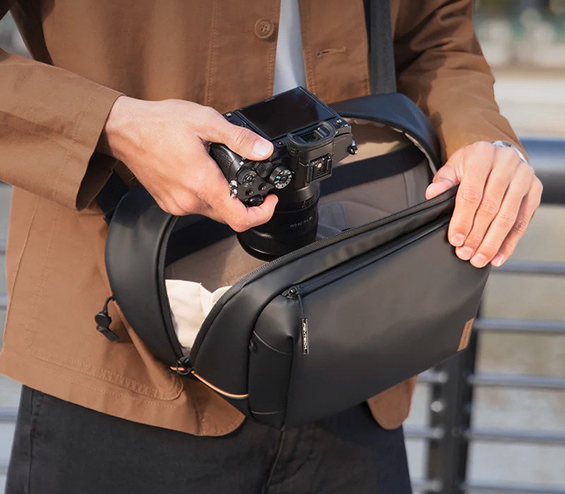 OneGo Solo V2 – серия плечевых сумок. Выпускается в 2-х цветах (черный, зеленый) и 3-х размерах (объем 4, 6 и 10 литров). Версия объемом 6 л хорошо подходит для беззеркальной камеры (включая полнокадровые модели) с 2-3 объективами среднего размера или для складного квадрокоптера типа DJI Mavic с пультом управления и аксессуарами. Основное отделение организуется с помощью 2 разделителей на липучках. У модели 6L по сравнению с 4-литровой версией добавлен передний карман на молнии, а также имеется складной карман для бутылки воды (убирается внутрь сумки, когда не используется). Ремень снабжен широкой и мягкой плечевой накладкой._