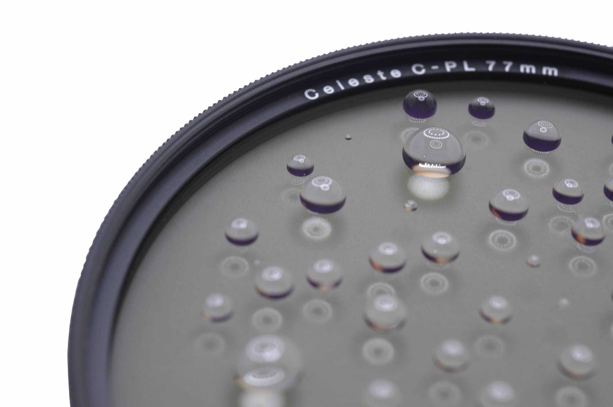 Наряду с отличными светопропускающими свойствами, Celeste C - PL обладает впечатляющими водо- и маслоотталкивающими свойствами благодаря антипригарному покрытию (ASC). С обеих сторон стекла нанесено защитное покрытие от пятен для упрощения и повышения эффективности обслуживания фильтра. Меньше шансов попадания пыли на фильтр и меньше шансов поцарапать фильтр при протирании поверхности чистящей бумагой. ASC эффективно отталкивает воду, масло и пятна, сохраняя поверхность фильтра чистой в различных условиях съемки. Больше нет необходимости часто чистить или вытирать пыль. Это обеспечивает более длительный срок службы изделия по сравнению с фильтрами других брендов. Покрытие быстрее снимается, если чаще протирать фильтр.
