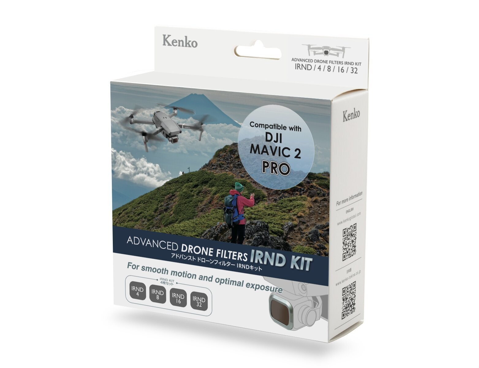 Комплект светофильтров Kenko Advanced Drone Filters IRND KIT включает в себя 4 фильтра различной плотности, позволяющих оптимальным образом настроить камеру в соответствии со световыми условиями, позволяя избежать дифракции и оптимальным образом проэкспонировать кадр.
