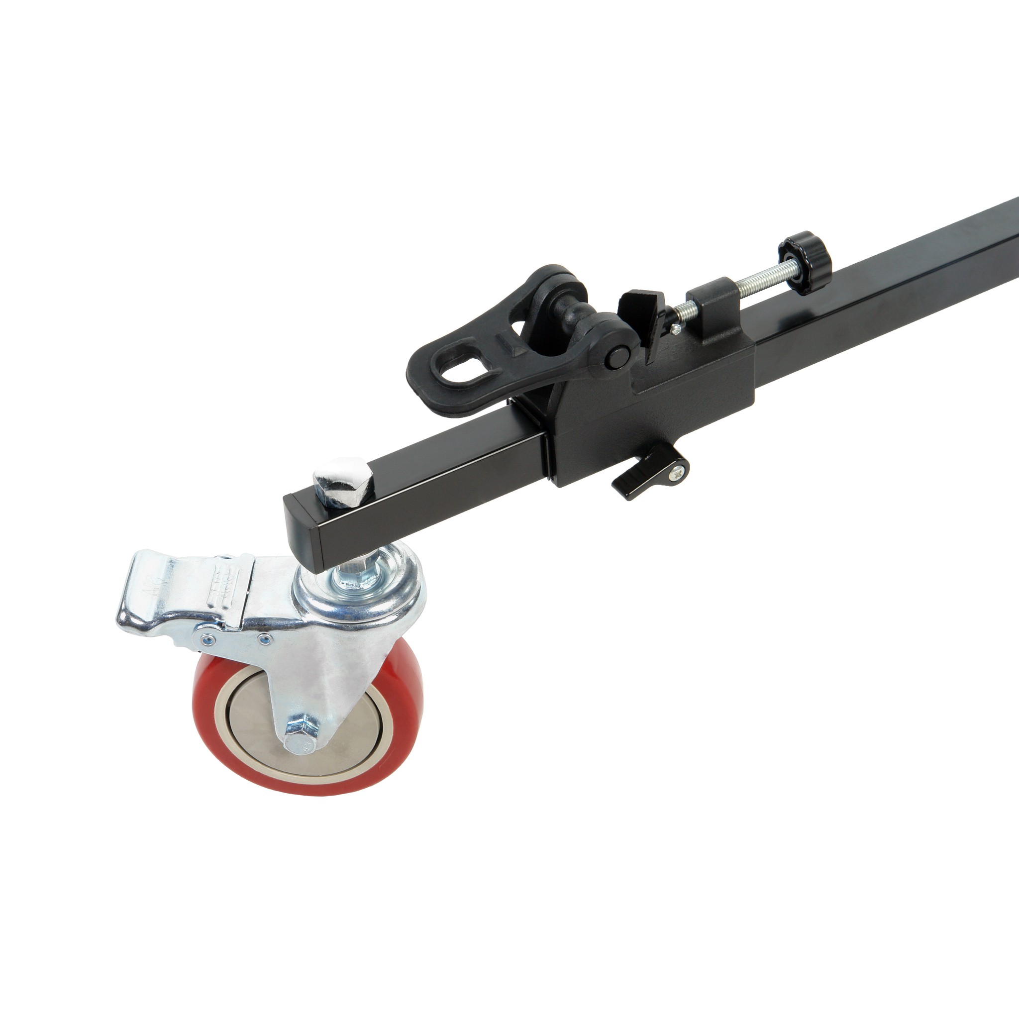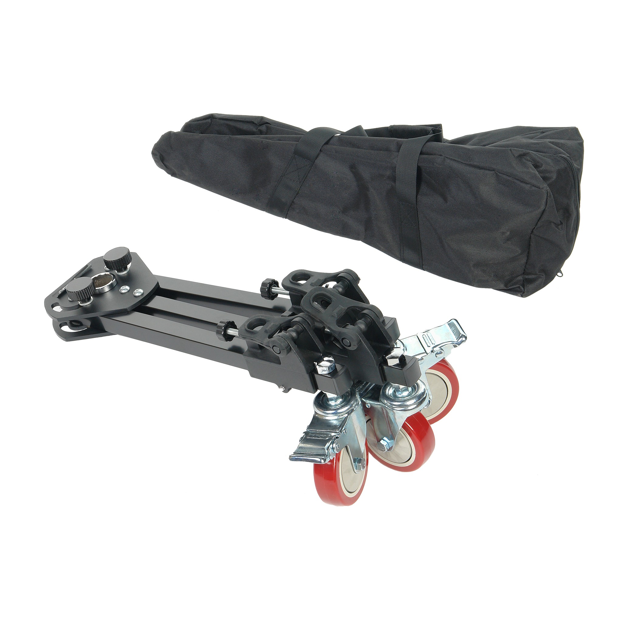 Три больших колеса _ 100 мм с шарикоподшипниками позволяют тележке плавно перемещаться внутри помещения студии или на улице, преодолевая такие препятствия, как кабель-канал, электрические провода, небольшие неровности. Каждое колесо оснащено индивидуальным тормозом, и вы можете заблокировать любое из колес, какое будет удобнее.