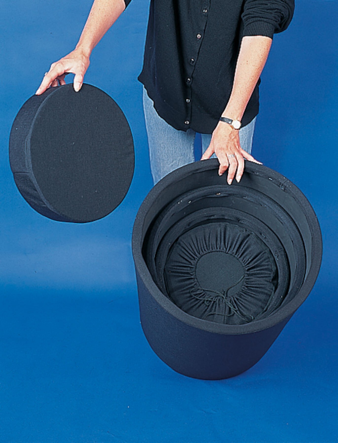 Эти 4 цилиндра для позирования Posing Tubs ghtlcnfdktys в различных вариантах высоты для множества комбинаций. Они покрыты прочной, износостойкой нейлоновой тканью и уплотнителями для комфорта. Каждый цилиндр помещается в другой, на размер больше, в стиле «русской матрешки» для простоты хранения и портативности.