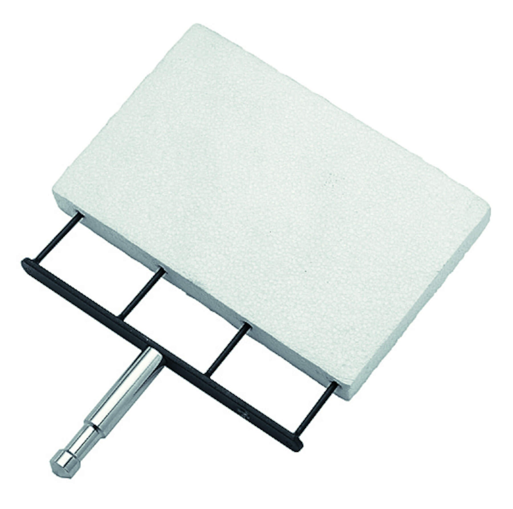 Держатель предаставляет собой вилку с четырьмя стальными шипами для насаживания пенопласта, алюминиевой планкой и пальца для фиксации вилки в гнездах и зажимах 16 мм (5/8")