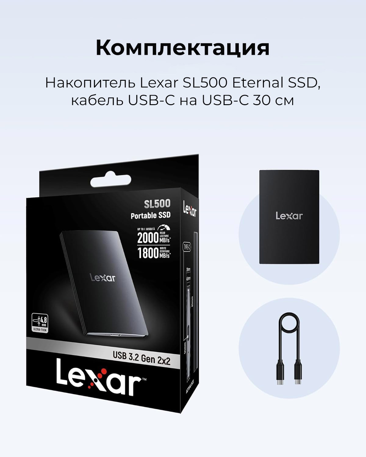 Накопитель Lexar SL500 Portable SSD 1TB,USB3.2 Gen2x2, R/W 2000/1800 МБ/с