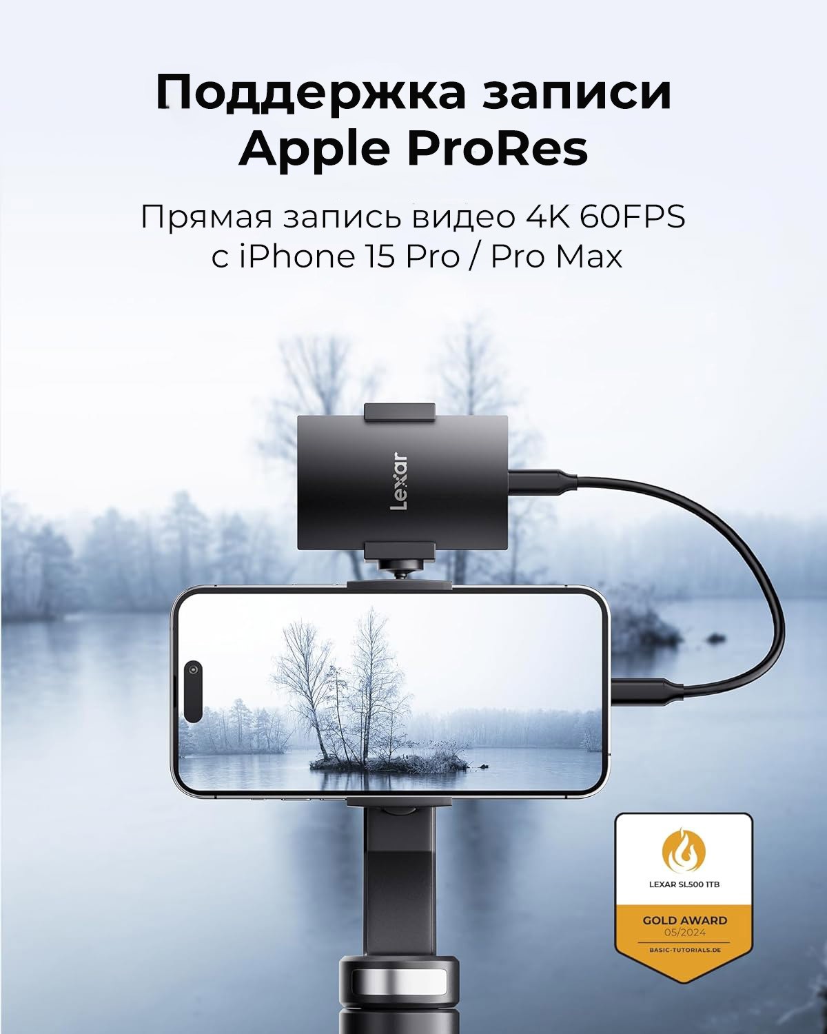 Портативный твердотельный накопитель Lexar® SL500 поддерживает запись Apple Pro Res. Выполняйте съемку непосредственно на накопитель со скоростью до 4K 60 кадров в секунду с iPhone 15 Pro и iPhone 15 Pro Max.
