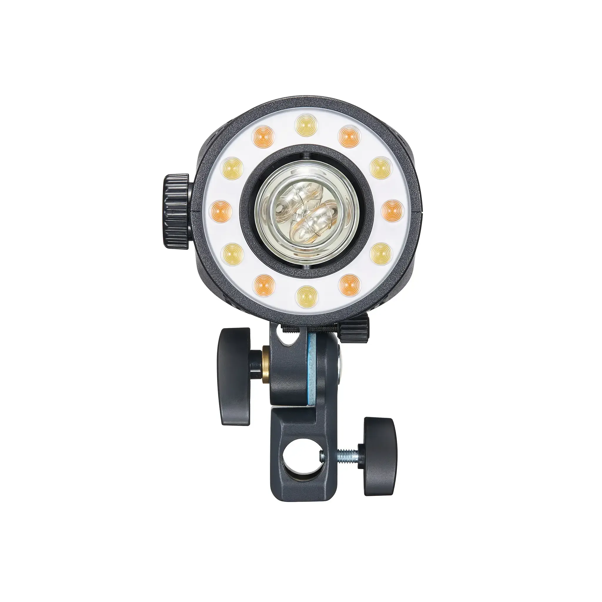 Обе головки вспышки оснащены bi-color светодиодной подсветкой с регулируемой цветовой температурой от 2800 до 6000 К. Моделирующий свет достигает яркости до 1400 люкс и может настраиваться либо пропорционально мощности вспышки для предпросмотра финальной экспозиции, либо регулироваться в диапазоне от 10 до 100% яркости.