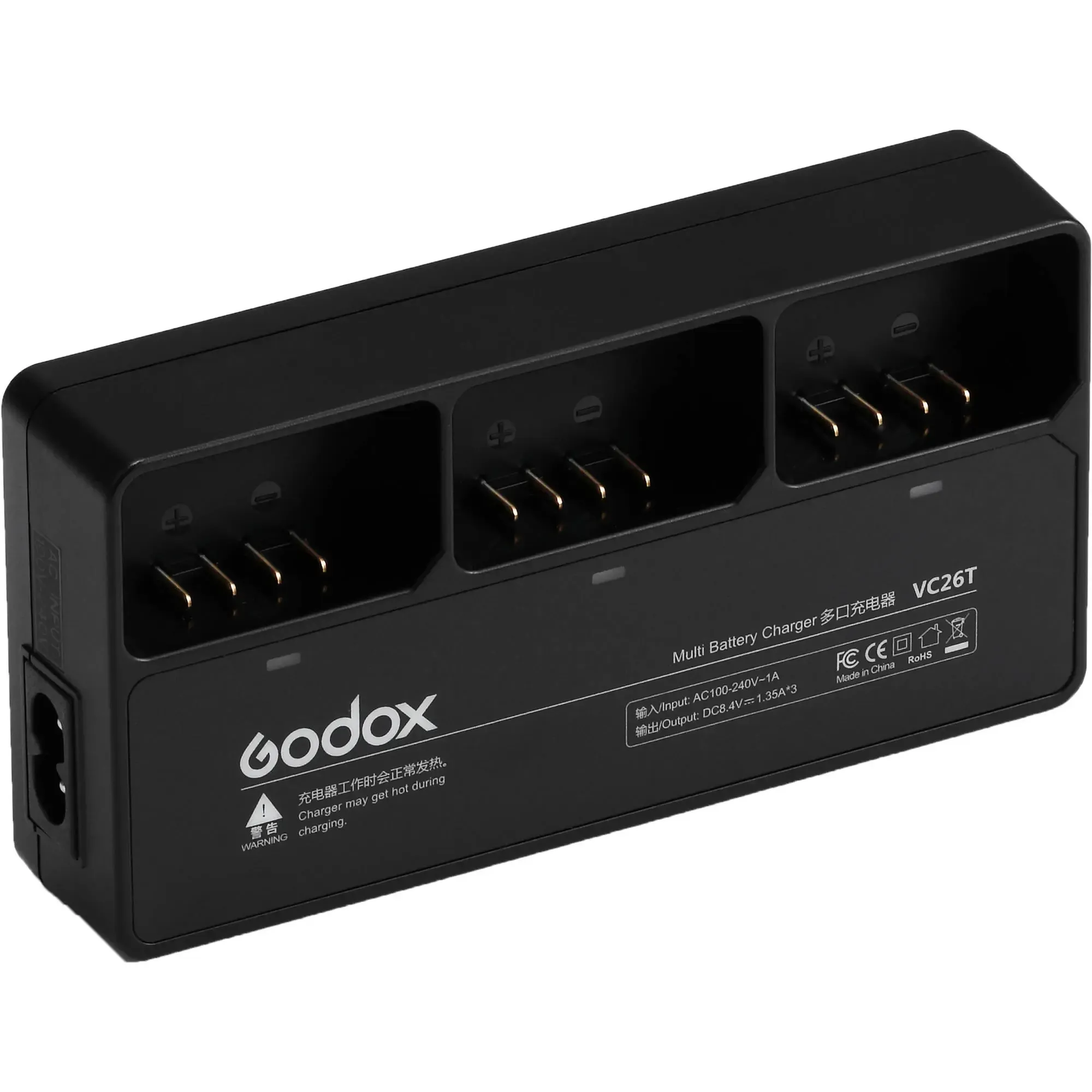 Godox VC26T -зарядное устройство для одновременной зарядки до трех аккумуляторов GodoxVB26 для накамерной вспышкиGodox Ving V1 или Godox WB100 для аккумуляторной вспышки AD100Pro.