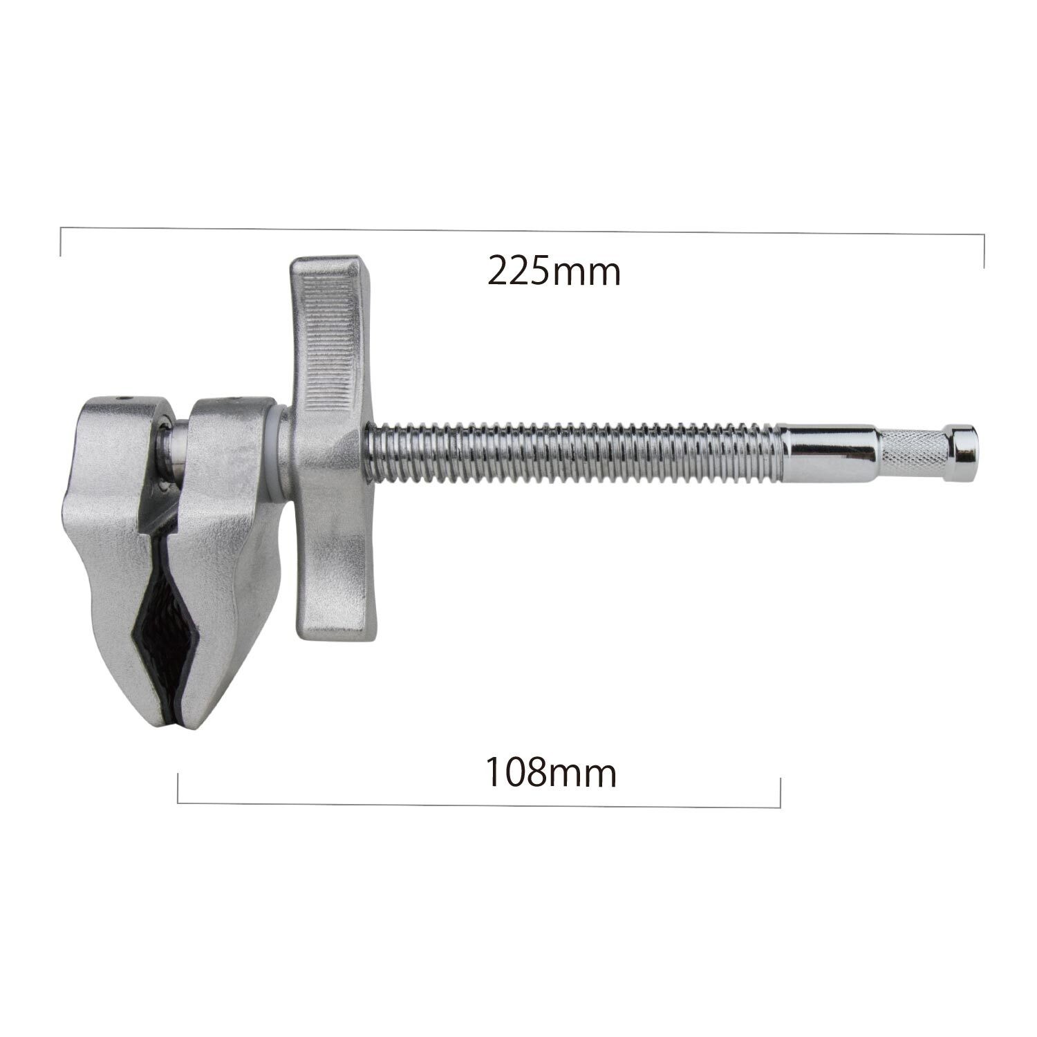Зажим KUPO KCP-604 SUPER VISER CLAMP END JAW 4" изготовлен из алюминия методом литья под давлением, что делает его прочным и одновременно легким, стержень изготовлен из стали. Раздвижные губки позволяют устанавливать зажим на круглых, плоских и другой формы предметах размером до 101 мм. Положение губок остается зафиксированным друг относительно друга благодаря пазу на стержне. Резиновые накладки на губках обеспечивают надежный захват, но при этом защищают зажимаемую поверхность. На стержне со стороны подвижной губки находится штифт Baby 5/8" (16мм).