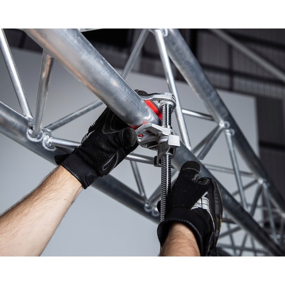 Высоконагрузочный торцевой зажим типа "мателлини" ("мотыль") с возможностью раскрытия на 15 см, креплении к круглым, квадратным или прямоугольным в сечении объектам и максимальной нагрузкой 50 кг. Зажим с одной зафиксированной губкой на конце стержня удобно позиционировать в ограниченном пространстве. Палец 16 мм (5/8’’) на конце стержня делает его совместимым с большинством светового оборудования и другого студийного оснащения.